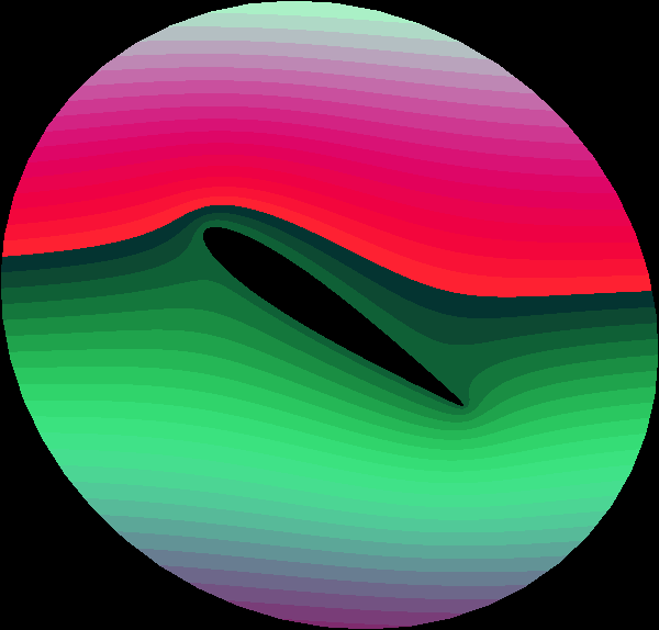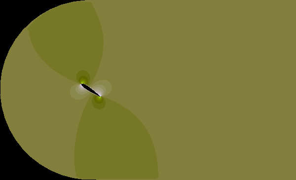 Parameters: Reynolds number Re=1000, attack angle = 30 degree